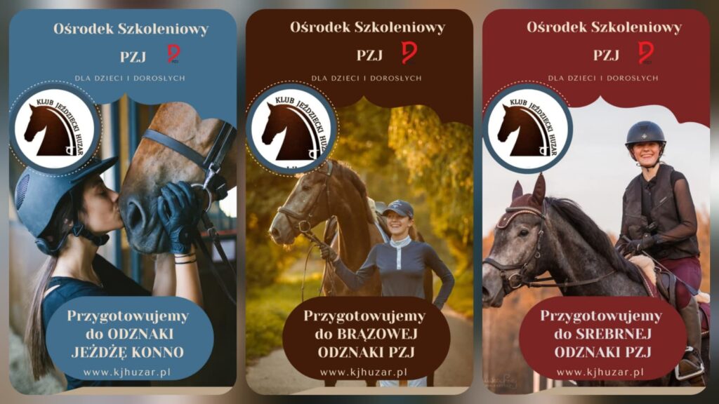 odznaki JEŻDŻĘ KONNO oraz Egzaminu na brązową i srebrną odznakę Polskiego Związku Jeździeckiego.